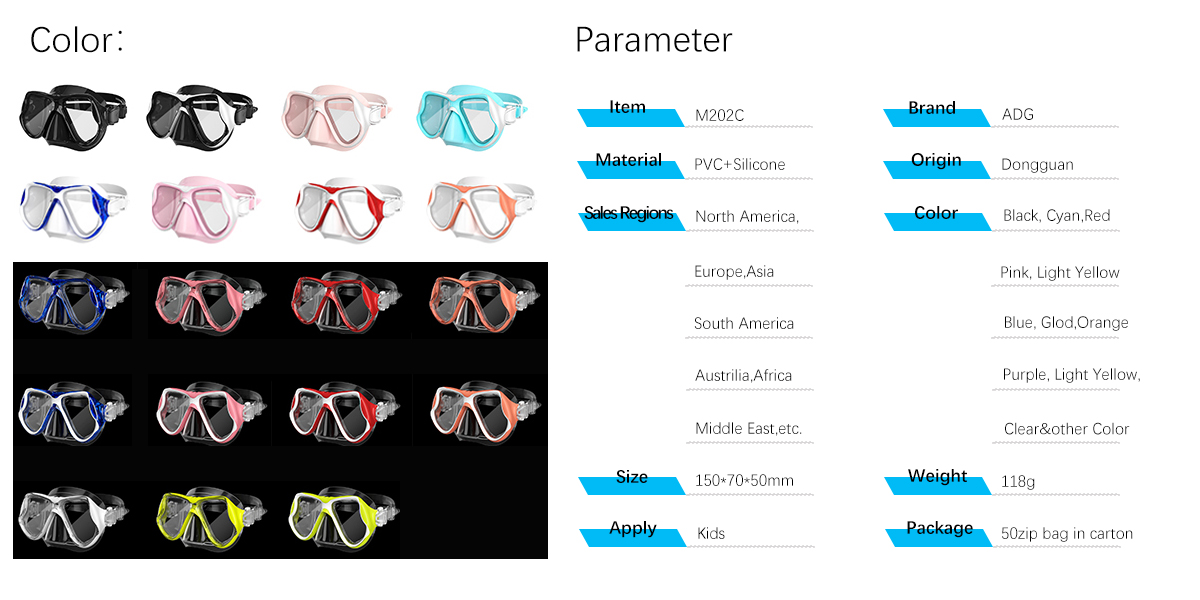 Children's diving masks. 180° Ultra-Wide Dual Lens: Our diving goggles feature a dual-lens design delivering an 180-degree ultra-wide field of view. Scuba masks boast exceptional impact resistance, significantly enhancing both underwater observation and safety Anti-Fog Tempered Glass Lenses: Dive mask lenses with professional-grade anti-fog coating and tempered glass construction effectively prevent moisture buildup, ensuring consistently clear and crisp underwater vision. Highly scratch-resistant, they withstand the rigors of underwater environments like rocks and reefs, offering safety and durability. Divers can focus on enjoying the ocean's beauty without frequent lens wiping Soft Silicone Nose Cover: The nose cover utilizes food-grade flexible silicone, designed to contour to facial shapes for a comfortable, pressure-free fit. Soft, skin-friendly, and elastic, it maintains comfort even during extended wear. The skirt and headband of the diving mask are made from food-grade silicone for a superior facial seal, eliminating leakage concerns during scuba diving, snorkeling, or swimming Lightweight & Comfortable, Leak-Proof: The full face scuba mask features a soft silicone skirt and TPU frame. Its unique leak-proof seal and streamlined contour ensure a perfect fit against the face. Even during rapid descents or vigorous movements, it effectively prevents water ingress, keeping your face dry and comfortable Adjustable Headband for Universal Fit: The quick-adjust strap accommodates various head sizes and face shapes. Any face type can swiftly find the most comfortable fit.