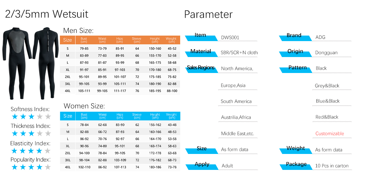 Diving Wetsuit Full Suit 2/3/5mm YKK Back Zip,SCR/SBR Size: S/M/L/XL/2XL/3XL/4XL; Chinese advanced sewing technology, a highly popular line specializing in diving This wetsuit is made with strategically calculated 3D draping and designed to prevent water from being submerged for more fun and comfort Customizable pattern and color