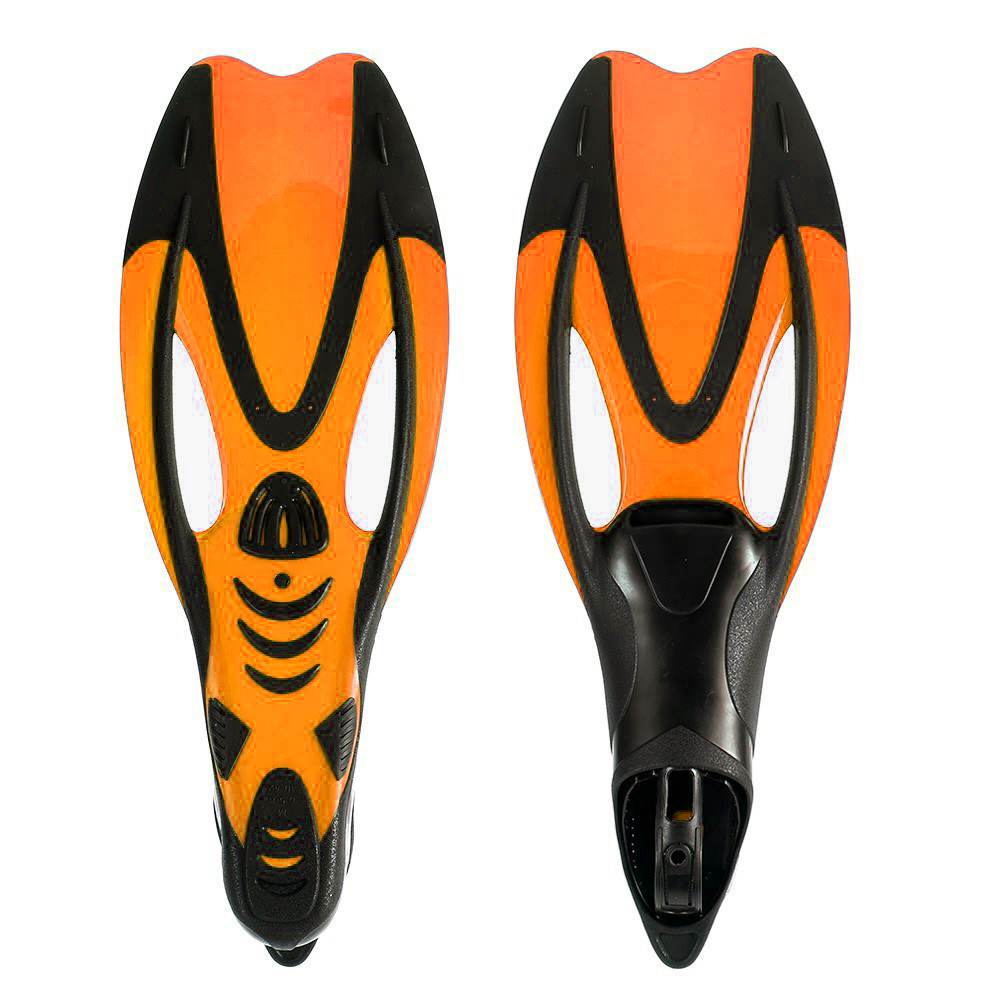 Composite design vented open heel fins with adjustable straps designed to follow the kid’s growth. Open heel fins with adjustable straps designed for kids aged from around 4 to 12 years old. Straps have a large thumb loop for easy donning and doffing. Dual vented blades for power and energy saving. Compact size, good for travel. Fun design, your kids will love.